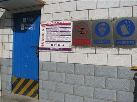 圖三:我公司氰化鈉的安全儲存?zhèn)}庫與安全警示牌
